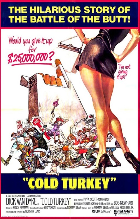 Cold Turkey is my all time favorite comedy and a very underrated film that many people have not seen. Still relevant today it is a classic satire of smoking and American life. Filmed in Iowa in 1969 and released to the theater in 1971 the comedy is timeless. I have the laser disc, it is not available on DVD as of yet but is available on VHS video tape. Barnard Hughes gives the performance of his career as Dr. Proctor, the town surgeon and doctor who is a chain smoker. The best scene in the film is when Dr. Proctor is in the operating room with a cigarette and Dick Van Dyke and friends are trying to convince him not to light up because the town will not get the $25 million dollars for everyone not smoking for thirty days if he does. Then Walter Chronic appears in the operating room under a round light which is made to look like a halo. Pippa Scott is Dick Van Dyke’s long suffering wife. Graham Jarvis is President of the Christopher Mott Society, a takeoff on the John Birch Society. Tom Poston has a small but important role as the town drunk Mr. Stopworth. Dick Van Dyke is the preacher at the Eagle Rock Community Church who almost single handedly whips the town into action. Edward Everett Horton in his final screen appearance as Hiram Grayson, head of the Valiant Tobacco Company. Bob Newhart in a somewhat unusual role as the villain from the tobacco company who is trying to win the bet with the town. An early vehicle for Norman Lear, this movie foretold his eventual success later. The old lady who is so cantankerous is priceless. Comedians Bob and Ray play numerous news anchors of the time. Vincent Gardenia plays the towns Mayor.
