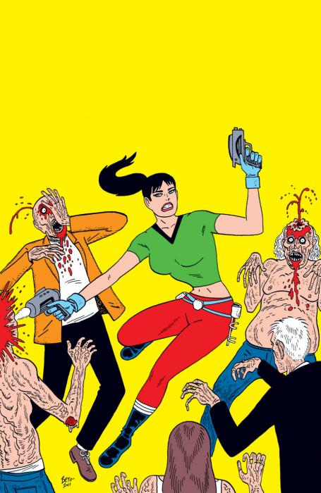 While the idea behind spin is an intriguing one, it’s worth noting that “Fatima” #1 doesn’t dwell on it too much; sure, there are some evil corporate men who claim to have a “cure” for spin that makes it non-lethal, but that’s not the center of “Fatima.” Rather, it’s Fatima and company shooting the heads off of zombies, over and over and over again. It’s not a book to be taken too seriously, at least not in this initial chapter. Rather, it’s a comic version of the popcorn flick; lean back, turn the brain off and enjoy the visuals.
