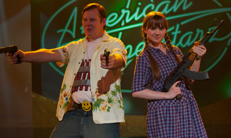 The plot is back-of-a-napkin basic: sad-sack salaryman Frank (Mad Men’s Joel Murray) loses his job and gets diagnosed with a brain tumour on the same day. His neighbours are loud and vulgar and have a screaming baby, and Frank fantasises about murdering all of them. He channel-hops from one cultural obscenity to another – satirical versions of TMZ, American Idol, which Frank calls “the kind of freakshow that comes along every time a mighty civilisation’s collapsing”, and My Super Sweet Sixteen – until he’s so irate he hits the highway with his handguns. First job, drive cross-country to shoot Miss Super Sweet Sixteen, one Chloe, in the head. Thenceforth he’s accompanied by Chloe’s psychotic 15-year-old schoolmate. Roxy (Tara Lynne Barr – watch this face) who wants to kill everyone from Twi-Hards to women who call their tits “my girls”, people who high-five, and even screenwriter Diablo Cody – “the only stripper in the world with too much self-esteem”. Frank, a small-C Eisenhower conservative, just wants people to be civil. They execute people who talk in the movies or take two parking spaces, before graduating to political and media targets, including disguised versions of Bill O’Reilly, that creepy “God Hates Fags” clan cult, and a climactic massacre at the “American Superstars” season finale.