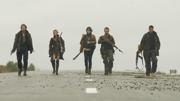 Five weary, heavily armed survivors of an unexplained 10-years-gone Armageddon stop to investigate a farmhouse they discover while trekking through the wilderness. Led by Rick (Dominic Monaghan), the militant yet hopeful head of the downtrodden group, the five want to establish whether anyone has already claimed the place.
