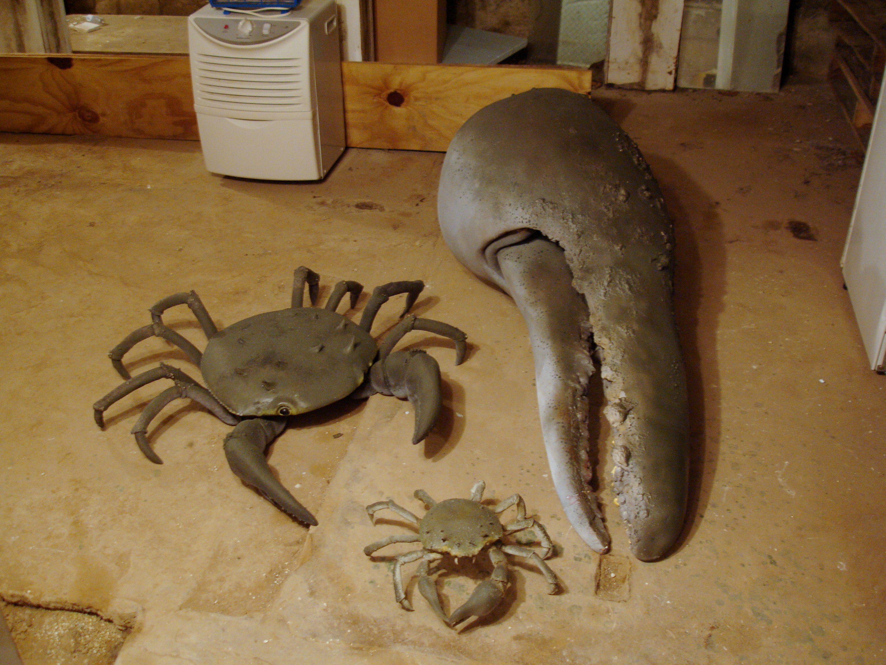 BRETT: There was one stop motion crab, three full sized “squishable” baby crabs, and a full sized giant crab claw. And yeah, I built them all myself.
