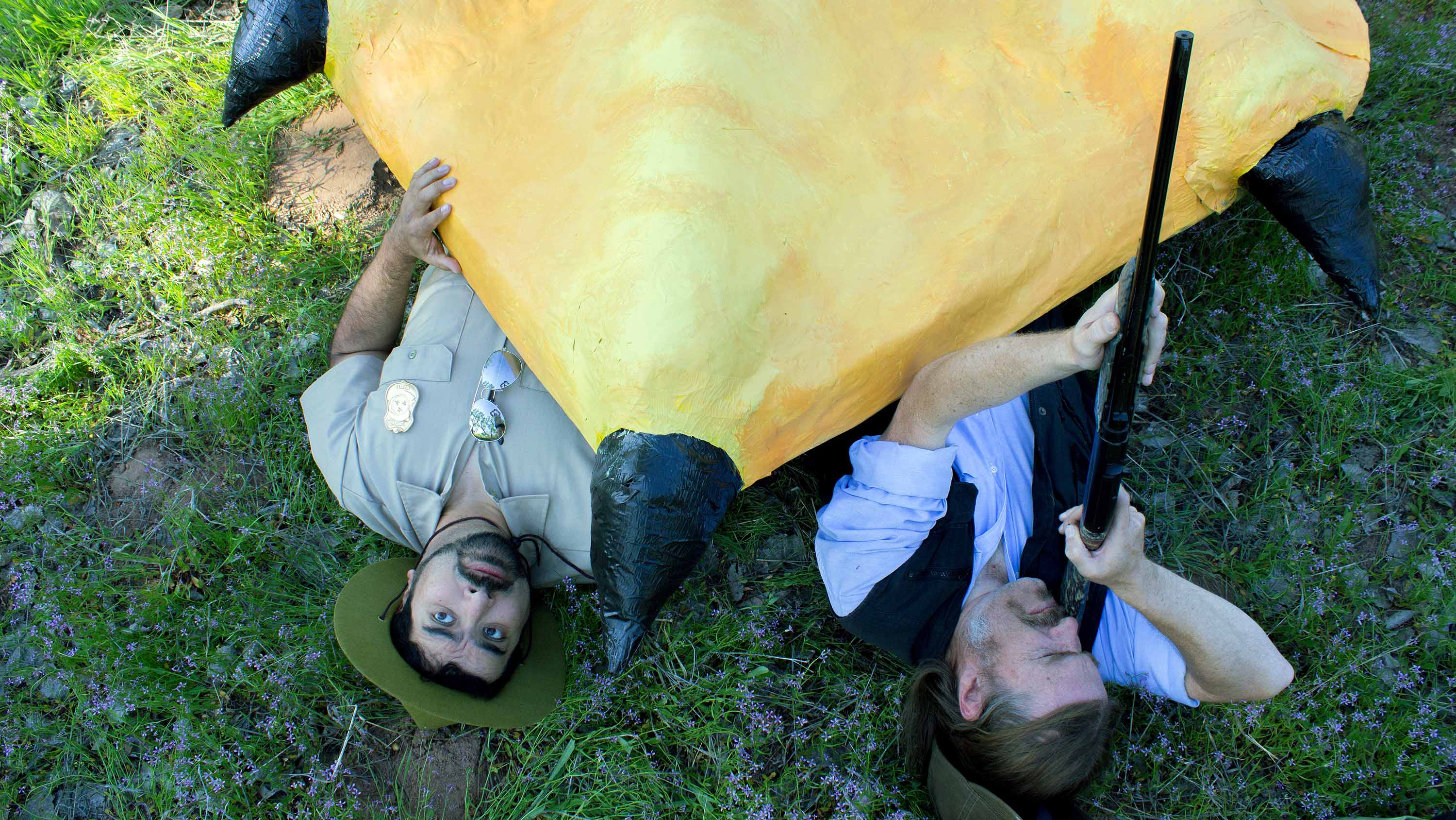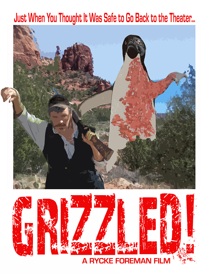 GRIZZLED! is a spoof of Jaws and the other giant-monster-run-amok films it inspired, in which a group of forest rangers and a grizzled hunter pursue a large, mutant penguin through the woods as they attempt to find the president’s lost daughter.