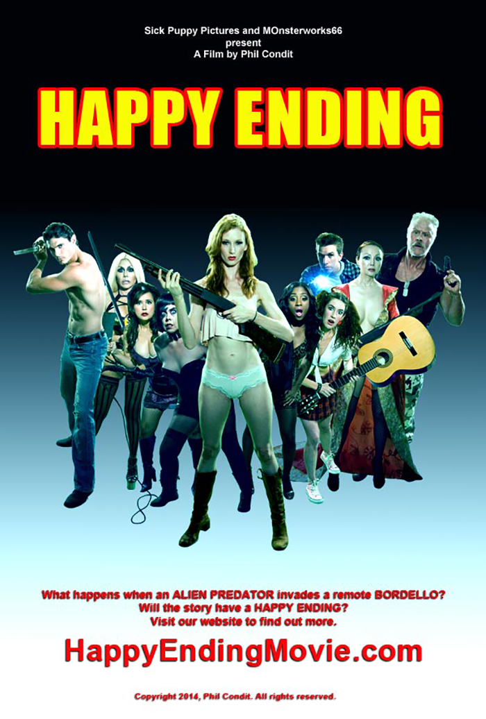 Happy Ending will feature the talents of the stunning Ange Maya (Aleta: Vampire Mistress/Empress Vampire), Jill Evyn (Axe Giant: The Wrath of Paul Bunyan) and Dolores Quintana (The Los Angeles Ripper), heroic hunk Brad Slaughter (1313: UFO Invasion) and genre-fave Brad Potts (Puppet Master X: Axis Rising).