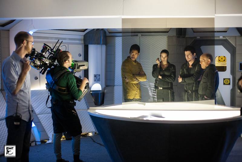 As for cinematography, Ioana Vasile did an awesome job in re-creating the style of the “Alien” era films. Even though they shot on digital (RED Epic), they wanted it to feel like celluloid. To achieve that they went with vintage Russian lenses, Lomo Anamorphics. The sets had a lot of white, but Scott wanted the film to have a dark mood so Ioana did some great creative lighting to get that. A lot of practical lighting was used too…lights built into the sets.