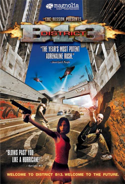 District B-13 isn’t a good movie in the traditional sense. The characters are pretty two-dimensional and mostly stereotypes, anyway. And the plot is certainly clichéd. Furthermore, the blind stab District B-13 takes at making a political statement for its conclusion is so misguided and hypocritical that it’s almost laughable. But never mind that. This is an action movie, son. When shit starts popping off you don’t stop to think about plot and morality, you just run and jump. And when you do, just be glad you moved the coffee table.
