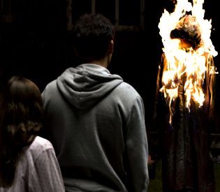Seriously, though, the film intercuts scenes of two families — one in England, one in Spain — being terrorized by the same super-natural figure, named “Hollow Face” by the adoles-cent girl in the English family because “he” has no features and yearns to steal the faces of children.