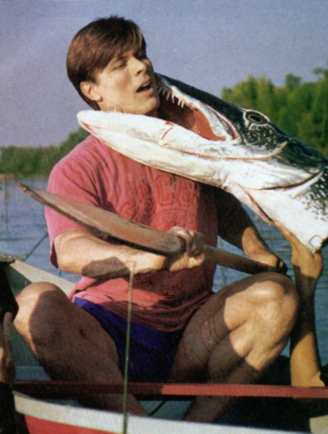 That a film as obscure as Psycho Pike has resurfaced at all is cause for celebration. With no official distribution, a string of misplaced VHS tapes and, at one time, only a non-descript listing for a Cannes screening available online, it’s a film that nevertheless haunted the minds of at least a handful of young Canadians who most likely discovered the film via an article in a 1992 issue of Cottage Life magazine. “Cottage Country’s First Psycho-Drama” is a breezy puff piece that details production on the film, accompanied by a still of a man with his head caught in the mighty jaws of a pike puppet. Offering a glimpse of a film maybe made just down the street, about a danger possibly lurking in the waters that they were about to swim in, it appears that Psycho Pike seared itself in the brain of more than one pre-teen reader spending the summer up north. Almost 20 years later, enterprising fans set up a Facebook group dedicated to finding a copy of the obscure film, and they eventually succeeded, thanks to a likeminded collector.