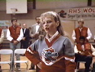 Yes, I had a couple of scenes with Judge Reinhold that didn’t make it in… one outside the guidance counselor’s office where I just pop in at the end, one on the bleachers where I ask him where he works (embarrass him and make him feel like a loser) and I also originally danced to the song “The Stripper” at half-time during the big game. That was fun, and it’s where me peeling off the glove with my teeth, came from.